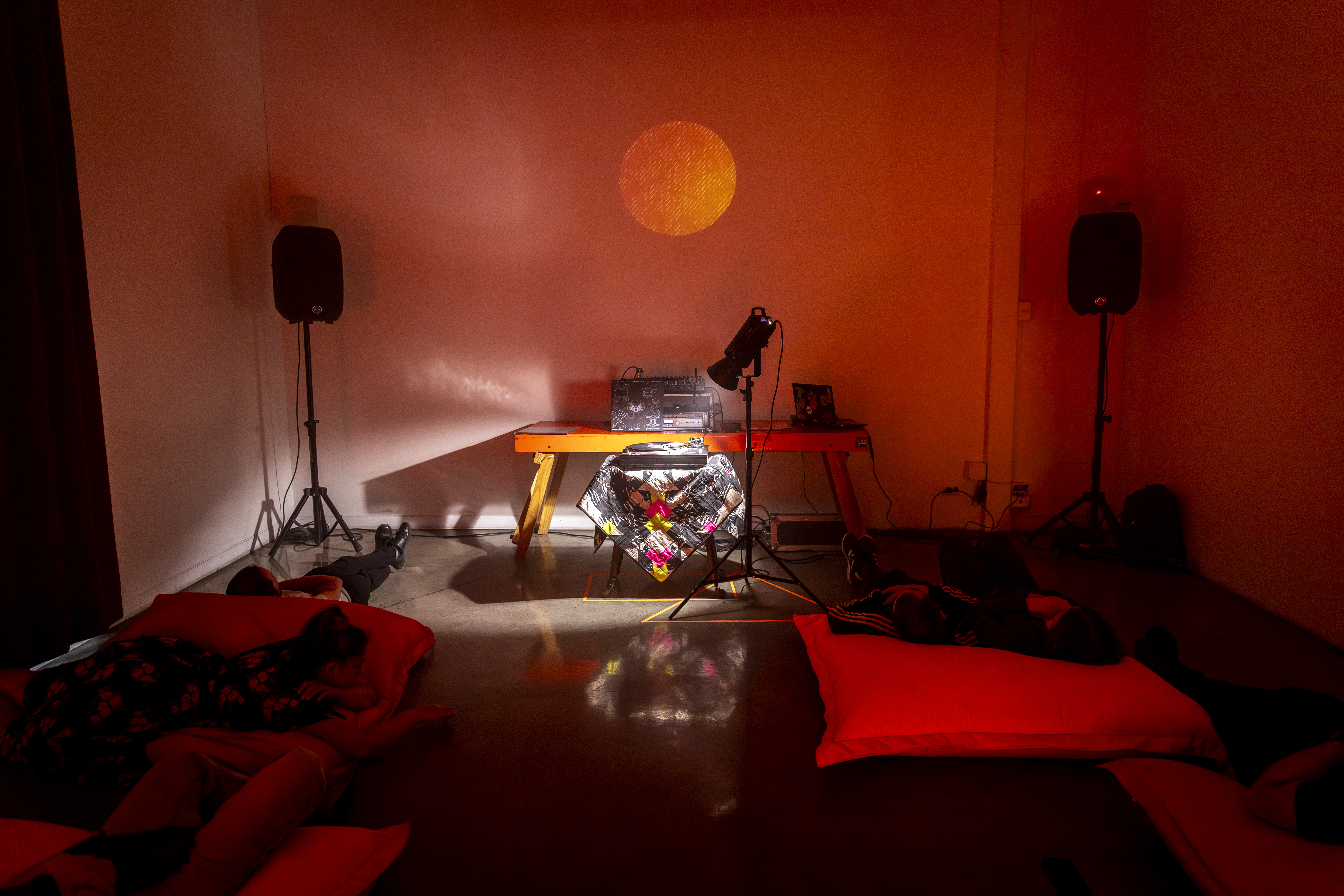 En esta ocasión, la artista María Jesús Schultz, presentó Selva Sintética, una sesión centrada en la escucha profunda del vinilo Sensible al código, desarrollado junto a Álvaro Daguer y Nicolás Godas, a partir de las activaciones del poncho sonoro creado como parte del proyecto del mismo nombre.
