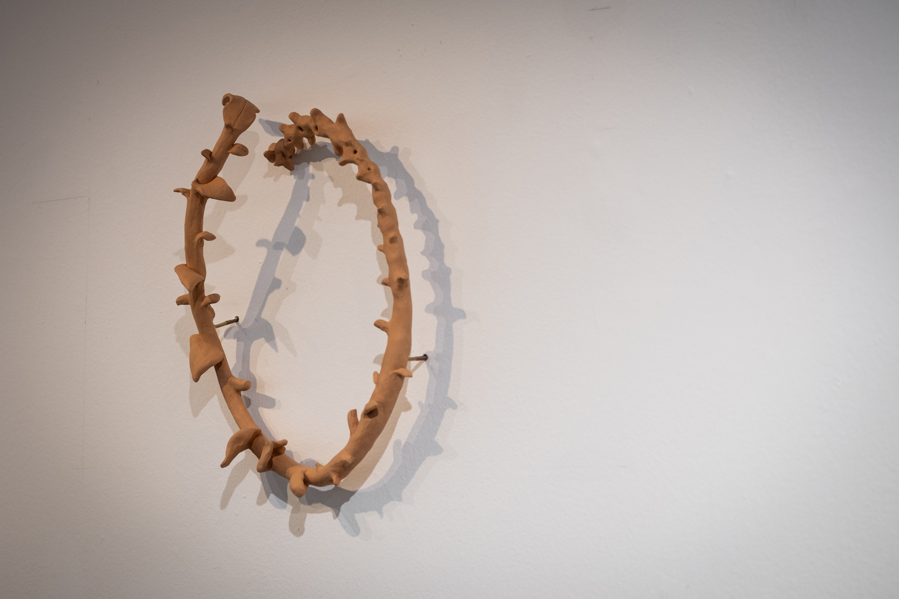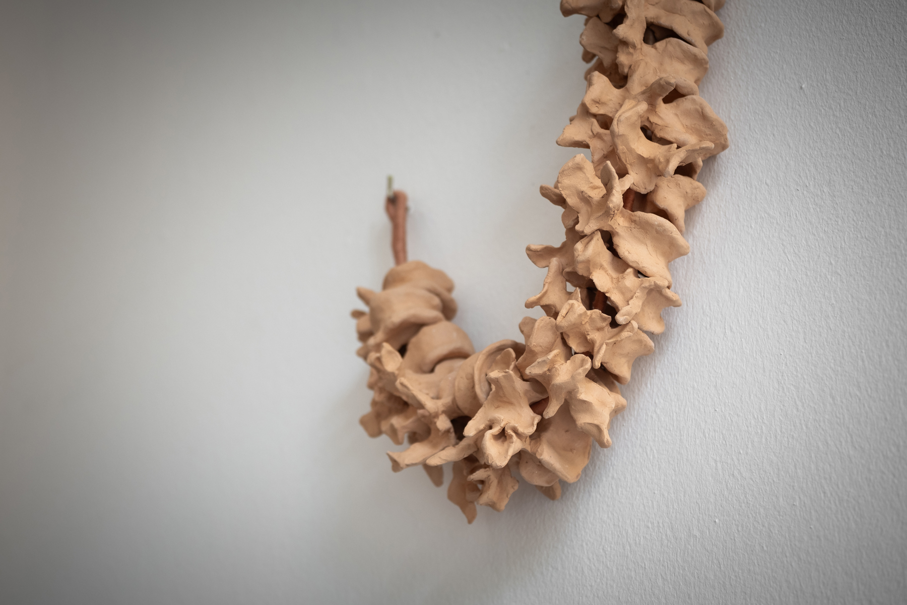 El dibujo, la tapicería, la cerámica y la fotoemulsión poseen una naturaleza cíclica e insistente, se repiten para aprender y reparar. Así, Respiración conjunta transita desde técnicas ancestrales del cordón montañoso Andino hasta la fotografía química de finales del siglo XIX articulando así un tiempo expandido en el que los materiales y los cuerpos, humanos y más-que-humanos, se transforman y dialogan. En este sentido, Fernanda propone un modo de relación no extractivo, donde la observación se convierte en una práctica de cuidado y donde lo aparentemente inanimado revela su capacidad de respuesta. La exposición no solo documenta un proceso de cohabitación, sino que ensaya una ética que reconoce que la vida no se define por un límite, sino por una trama de interdependencias. Así, la artista nos invita a aprender a respirar con otros ritmos y a imaginar formas de convivencia que desbordan las fronteras de lo humano.