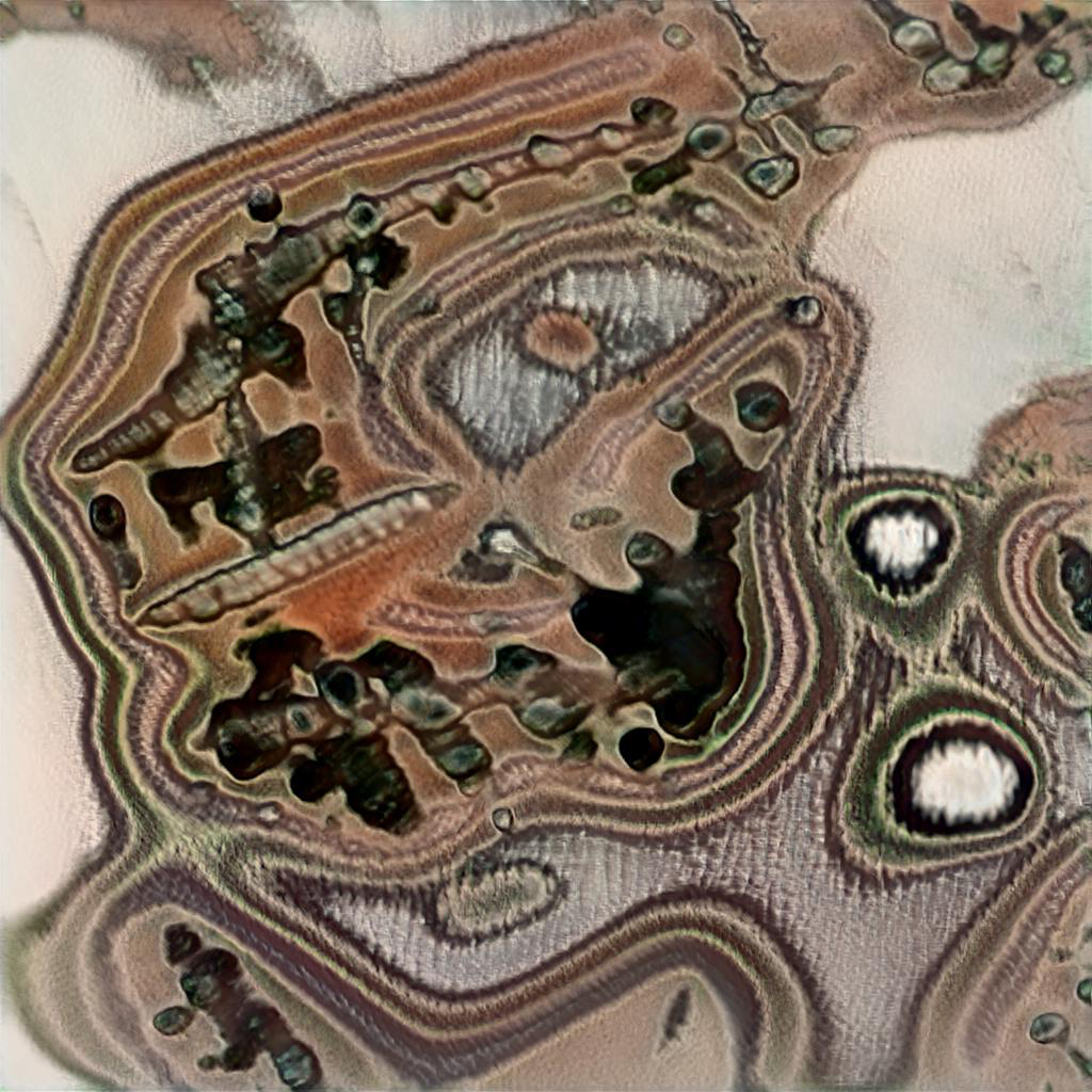 Estas imágenes fueron organizadas y utilizadas en el entrenamiento de un modelo de aprendizaje maquínico, a través de la aplicación Runway ML. A través de este entrenamiento, este modelo de inteligencia artificial (entrenado originalmente para la identificación y generación de imágenes sintéticas de rostros humanos), adquirió la capacidad de identificar los patrones que componen la estructura visual de cada imagen y la estructura visual del total de las imágenes, extrayendo reglas para la generación de un número ilimitado de nuevas imágenes sintéticas.
