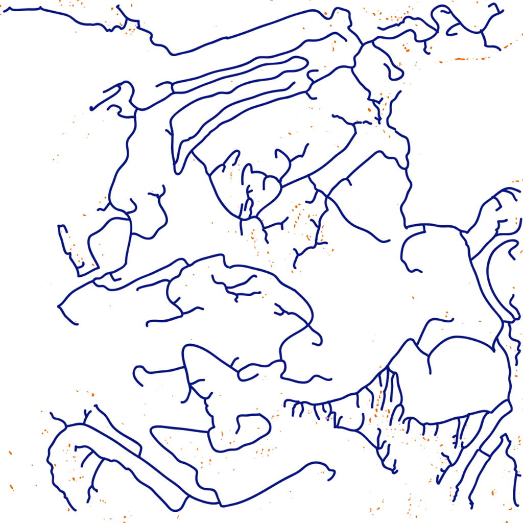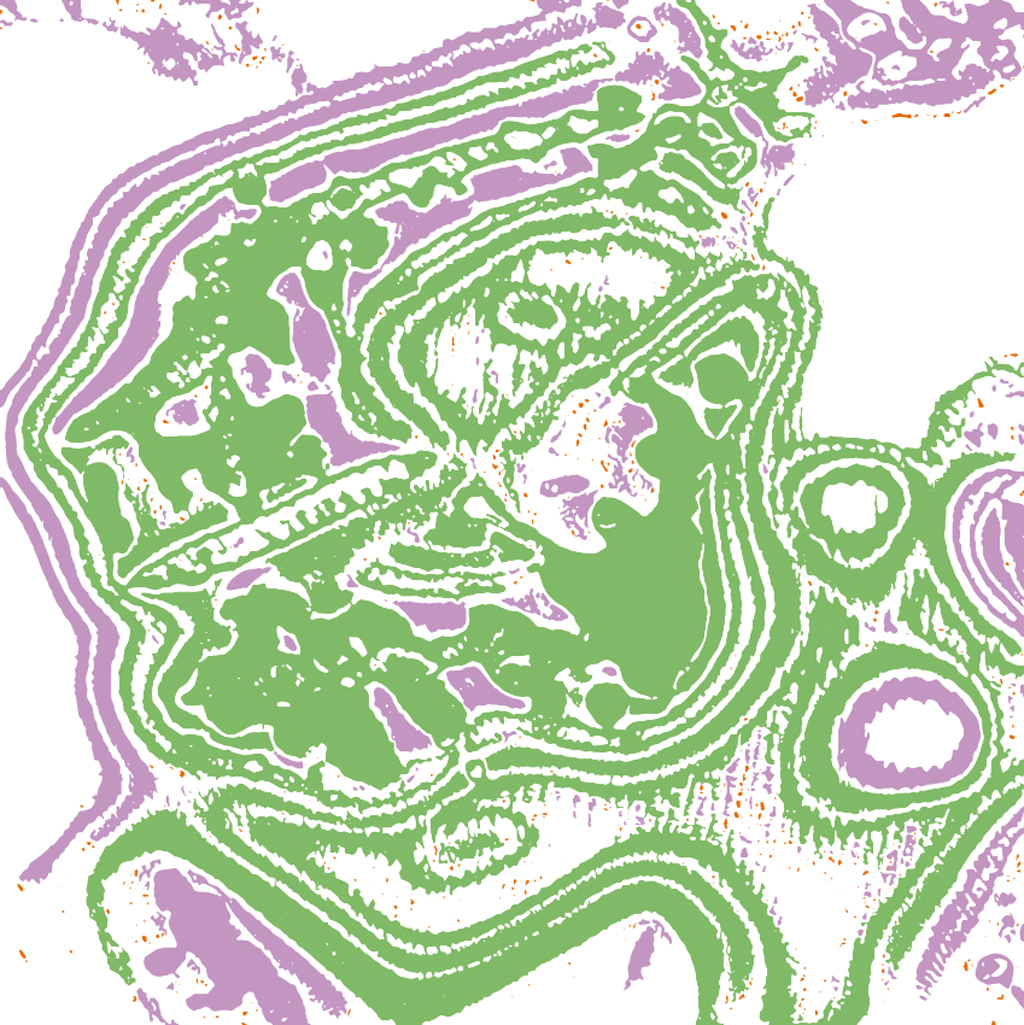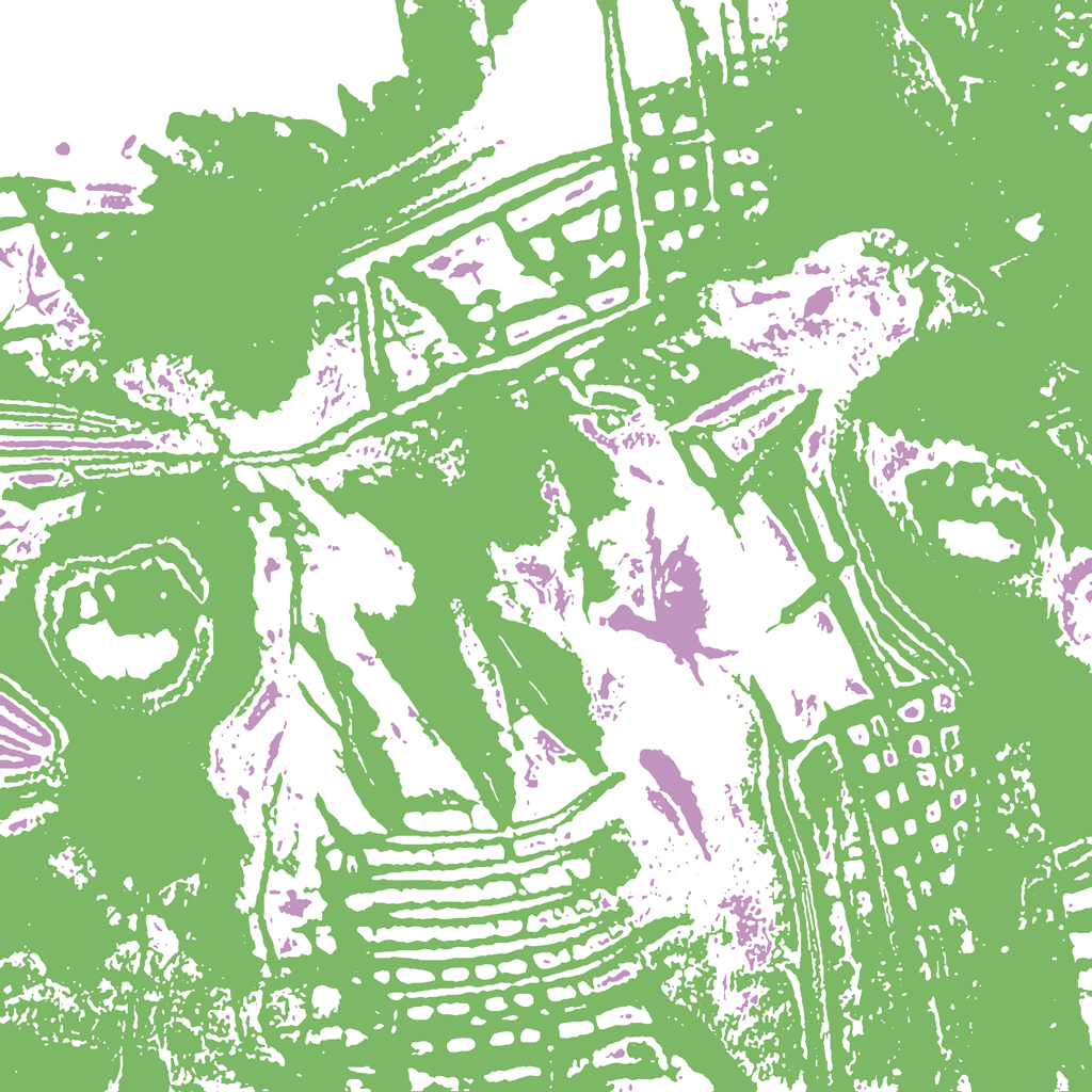 El volumen de imágenes sintéticas entregadas por el modelo fue posteriormente clasificado, y se seccionaron 3 “familias” con el fin de dar cuenta tanto de la variedad como de la secuencialidad de las imágenes maquínicas. Estas imágenes mantienen las mismas propiedades del código de las imágenes originales, en términos de color y de escala, dimensiones que fueron posteriormente editadas con el fin de logra imágenes acordes a las técnicas de impresión serigráfica y a los requerimientos de continuidad propios del trabajo con tintas conductivas. Por esta razón, las imágenes fueron llevada a blanco/negro, luego a lato contraste y posteriormente sectorizadas a modo de recuperar las texturas olvidadas dentro de este proceso.