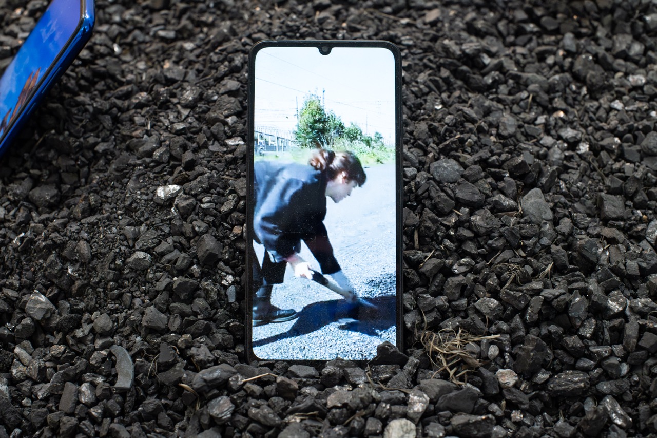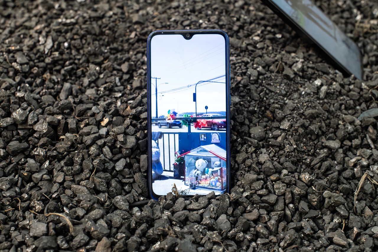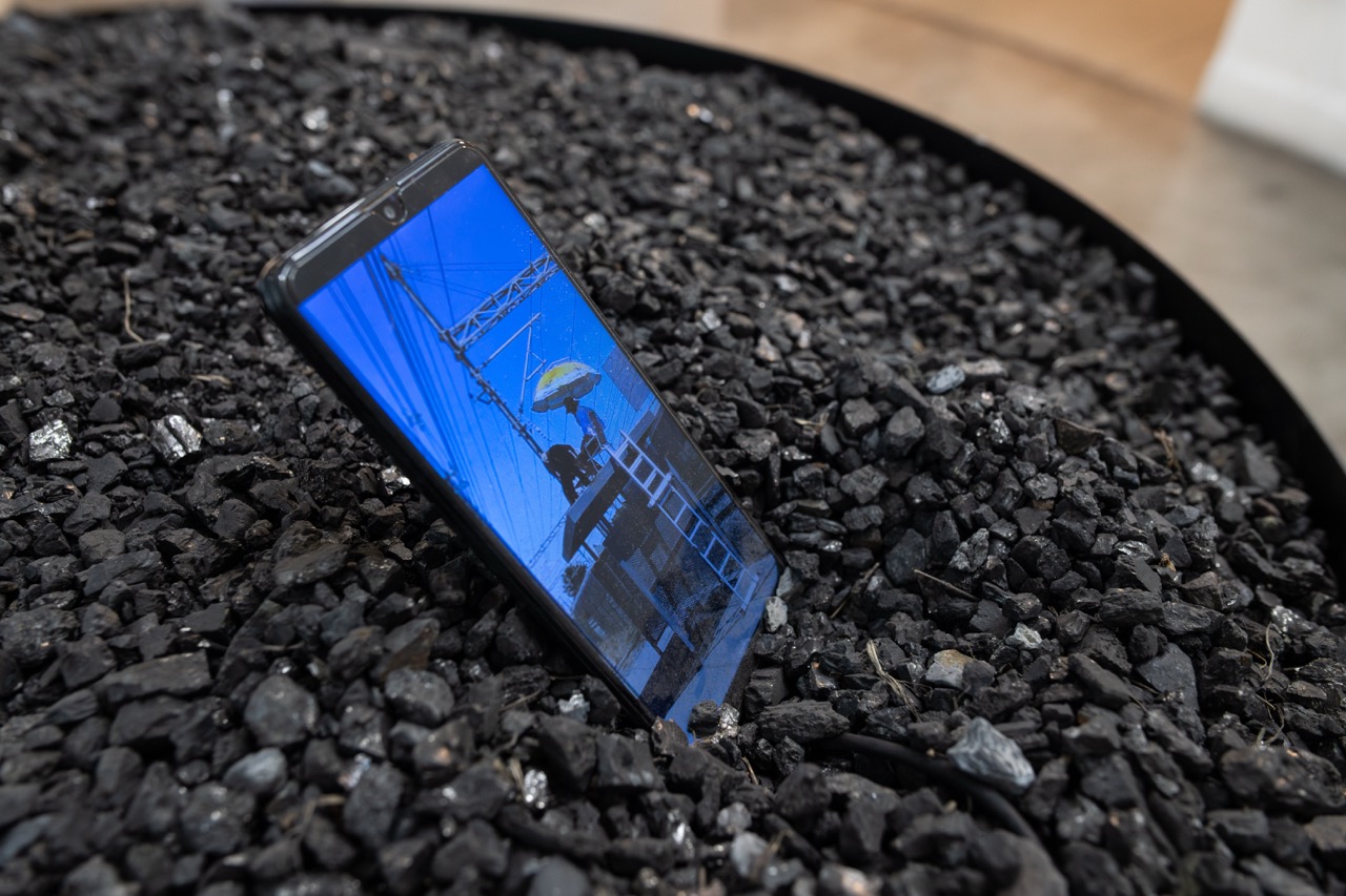 Escoria de carbón y celulares sobre bandeja de acero, 2025